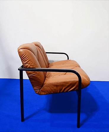 Two-seater sofa designed by Vico Magistretti and produced by ICF/Knoll International in the 80s. It has a painted steel structure with leather seats.