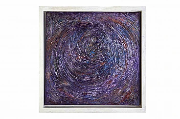 Title work “ The sound of the black hole “-2022Cloth 40x40 cm ( white wooden frame ) Mixed material tecnique,stucco