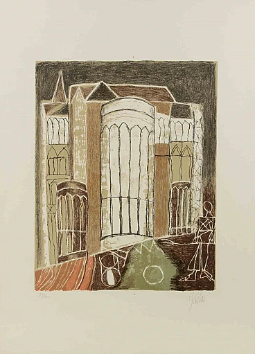 Architectures is a contemporary artwork realized by Franco Gentilini in 1970s.Mixed colored lithograph.Hand signed and numbered on the lower margin.Edition of 39/200.