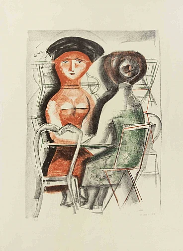 Massimo Campigli, Female Conversations, Lithograph 1940s-1950s