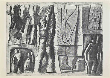 Symbol and Myth is an artwork on white cardboard realized by Italian Artist Mario Sironi (1885-1961) in 1961.Phototype print.Signed on the low corner.Good conditions. Printed on the back "18. Simbolo e mito - 1961".Mario Sironi (May 12, 1885 – August 13, 1961) was an Italian modernist artist who was active as a painter, sculptor, illustrator, and designer. His typically somber paintings are characterized by massive, immobile forms.Discover more on