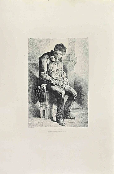 La Priere is a black and White etching realized by Jacques-Joseph Lecurieux in the 1860s. Titled in the lower.Image size: 31x23.Very good impression with wide margins and a very fresh inking.Realized for the "Société des Aquafortistes. Born on the initiative of the publisher Alfred Cadart, the Société des Aquafortistes had the aim of reviving etching which had slowly been replaced by the cheaper lithography. Among the first participants in the association were the Barbizon painters who helped raise the medium to new heights, but over 100 leading French artists contributed to the creation of the 300 engravings. With the publication of the last volume in 1867 the society, given the high costs and modest commercial success, was dissolved but new experiments were soon born: Félicien Rops, former member, founded the Société Internationale des Aquafortistes in Brussels in December 1869 , while in London The Portfolio and the Society of Painter-Etchers were born respectively in 1870 and 1880. In Paris, in 1873, the magazine Paris à l'eau-forte was founded.