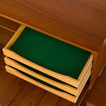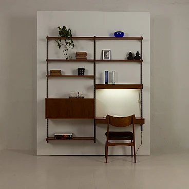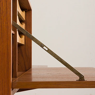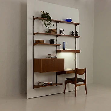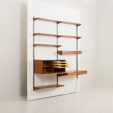 This functional Danish teak shelving system was designed in the 1960s by Kai Kristiansen, an icon of Danish design, for the renowned furniture company Feldballes Møbelfabrik.