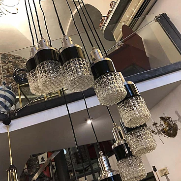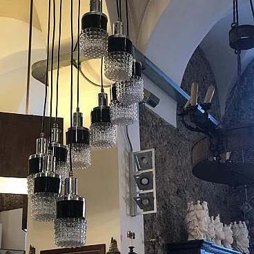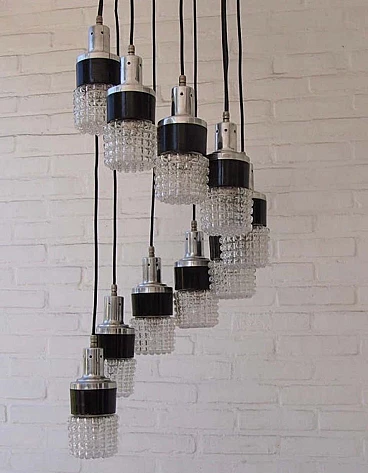 S shaped cascade chandelier with 10 lights with sculptural glass shade, 70s