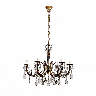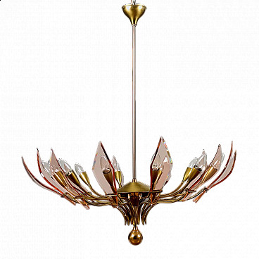 8-Light ceiling lamp in Murano Glass and brass, 1940s