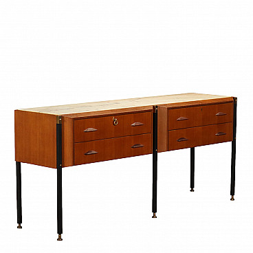 Cabinet Mahogany Veneer Metal Brass Italy 1950s 1960s