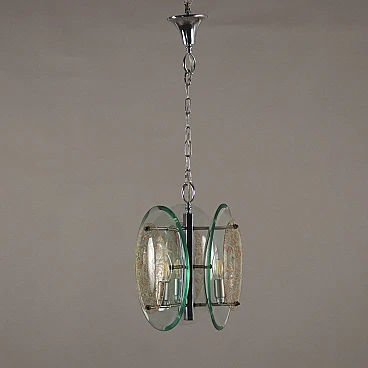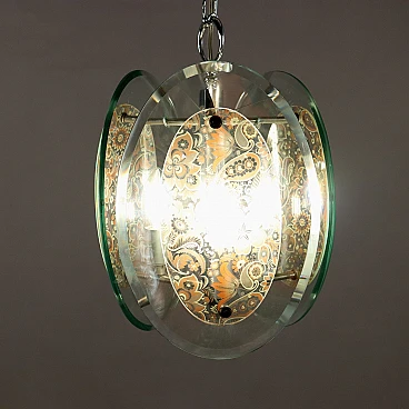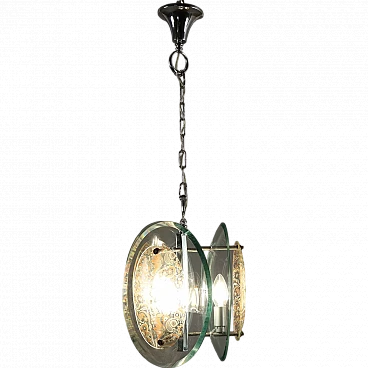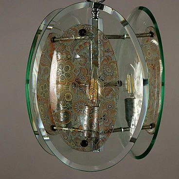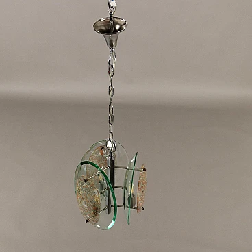 Chromed metal and decorated clear glass chandelier, 1960s
