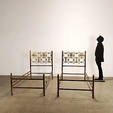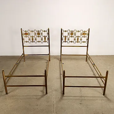 Pair of single beds in brass decorated with tiles, 1960s