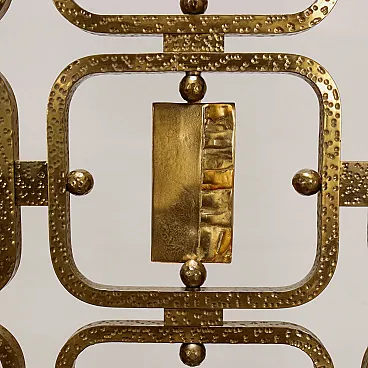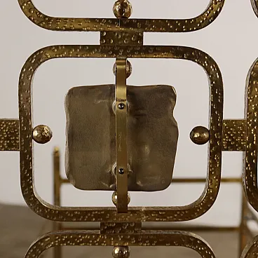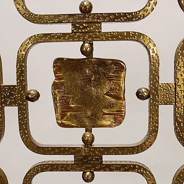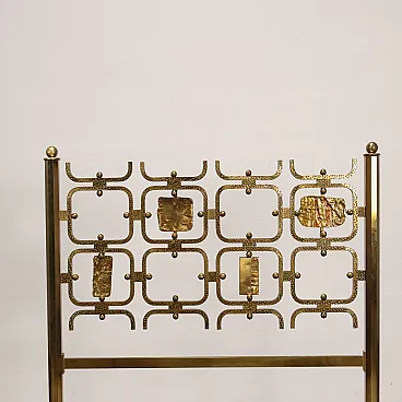 Pair of beds with brass structure, headboard with worked brass panels. Italian production, 1960s.
