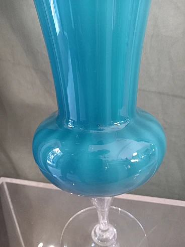 Flower holder in light blue opaline glass, 70s
