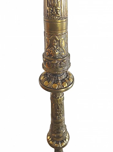 Baroque style brass floor lamp. A style that goes from the beginning of the 17th century to the mid-18th century which replaces the measure, classicism, order and balance typical of the Renaissance with a sense of the fantastic, dynamism, scenographic effect and illusionism. Excellent general conditions. Dimensions 178 x 50 SKU 109640