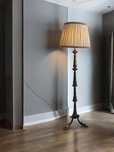 Brass floor lamp with baroque style details