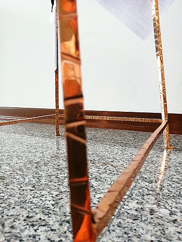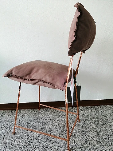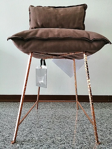 Structure in polished copper-plated steel, finely crafted by hand, padding in goose down, the latter washed and sterilised, and superfine charming kashmir covering with sharp edge stitching.