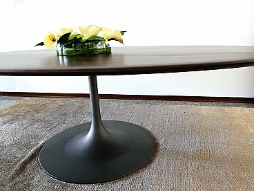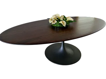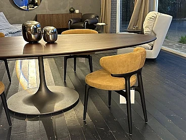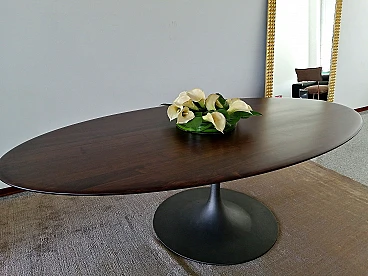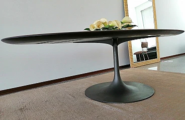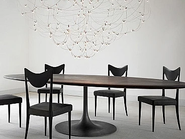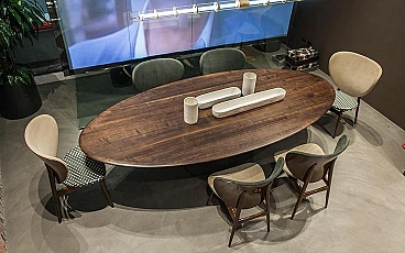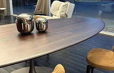DESIGNERS MATTEO THUN & ANTONIO RODRIGUEZ Bourgeois is a majestic table created by one of the most prestigious and established Italian companies in the luxury design sector. Its oval top, in dark stained solid Canaletto walnut, is finished with natural oils. Its base, a single central leg, is made of sandblasted cast iron. Its measurements are 250x130x74 cm. For further information do not hesitate to contact me! HI!