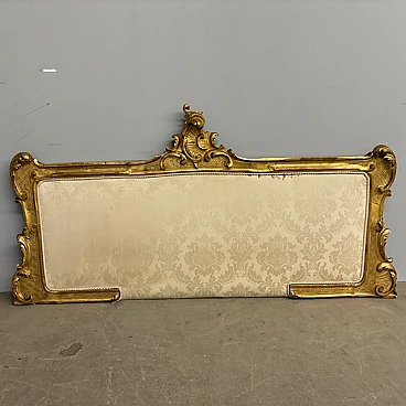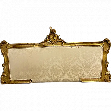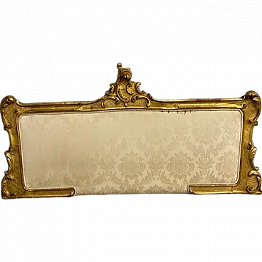 Ancient, beautiful, Louis Philippe headboard, from the 1840 with gold leaf carving. Size Width 192 H 98 cm. Good state of conservation, small wear due to age and lived fabric.
