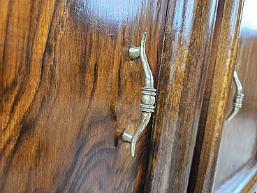 Pair of briar bedside tables with door and drawer, Italian production circa 1940s. They lend themselves very well to any type of environment from modern to ancient. They show normal signs of age and use, they have been polished with oil and shellac.