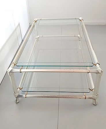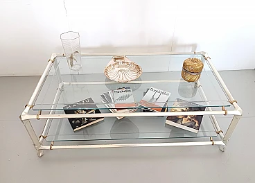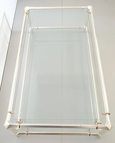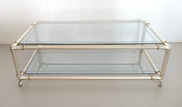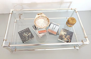 Engraved crystal and metal coffee table with lower shelf, 1990s