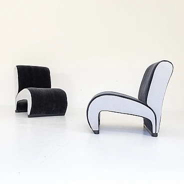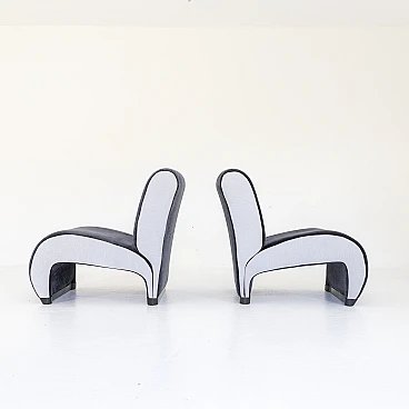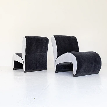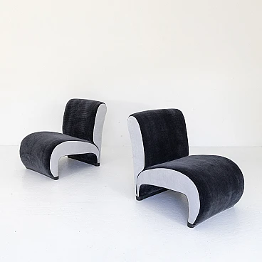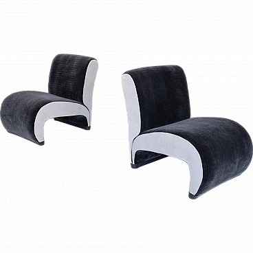 Pair of small armchairs in blue and grey velvet, 1970s