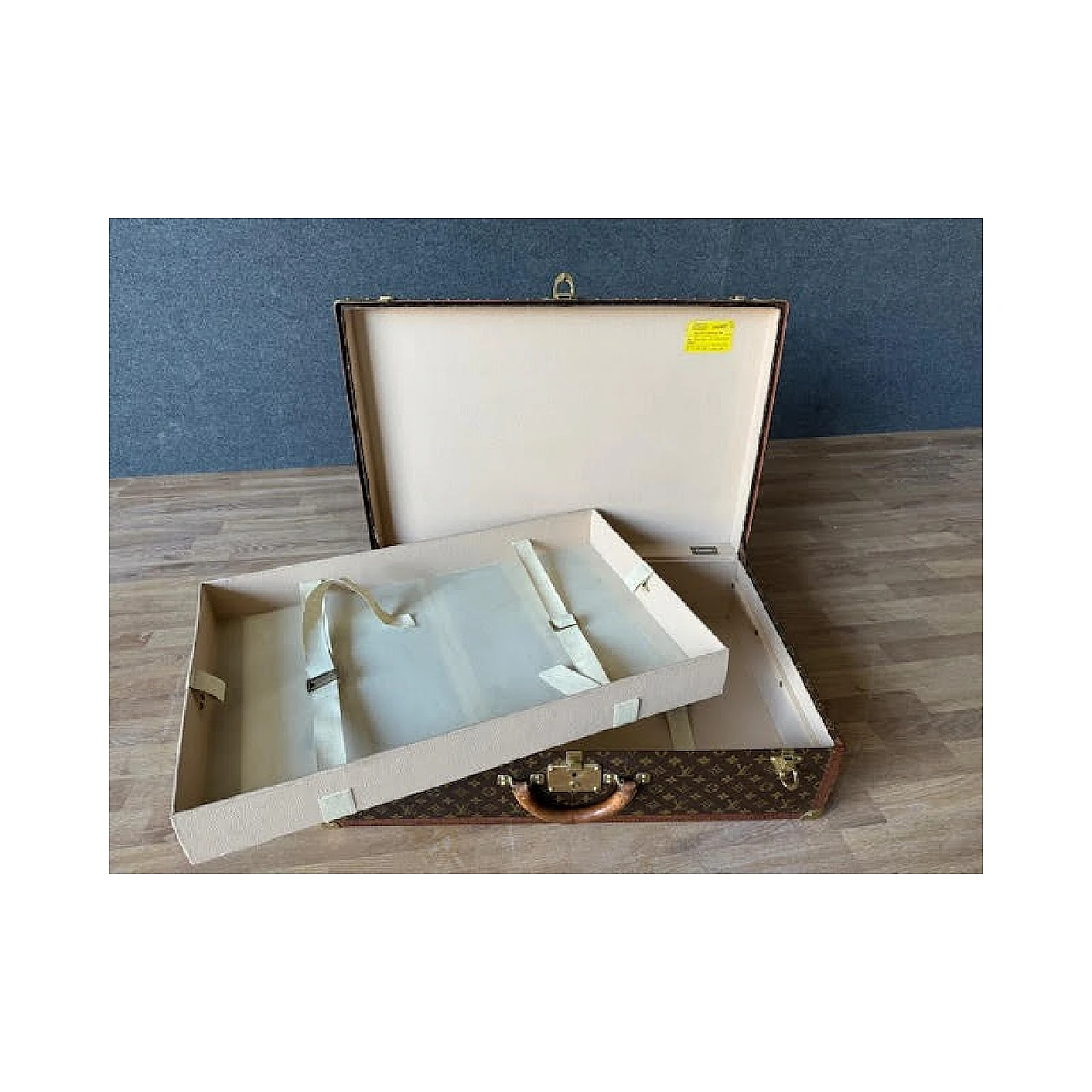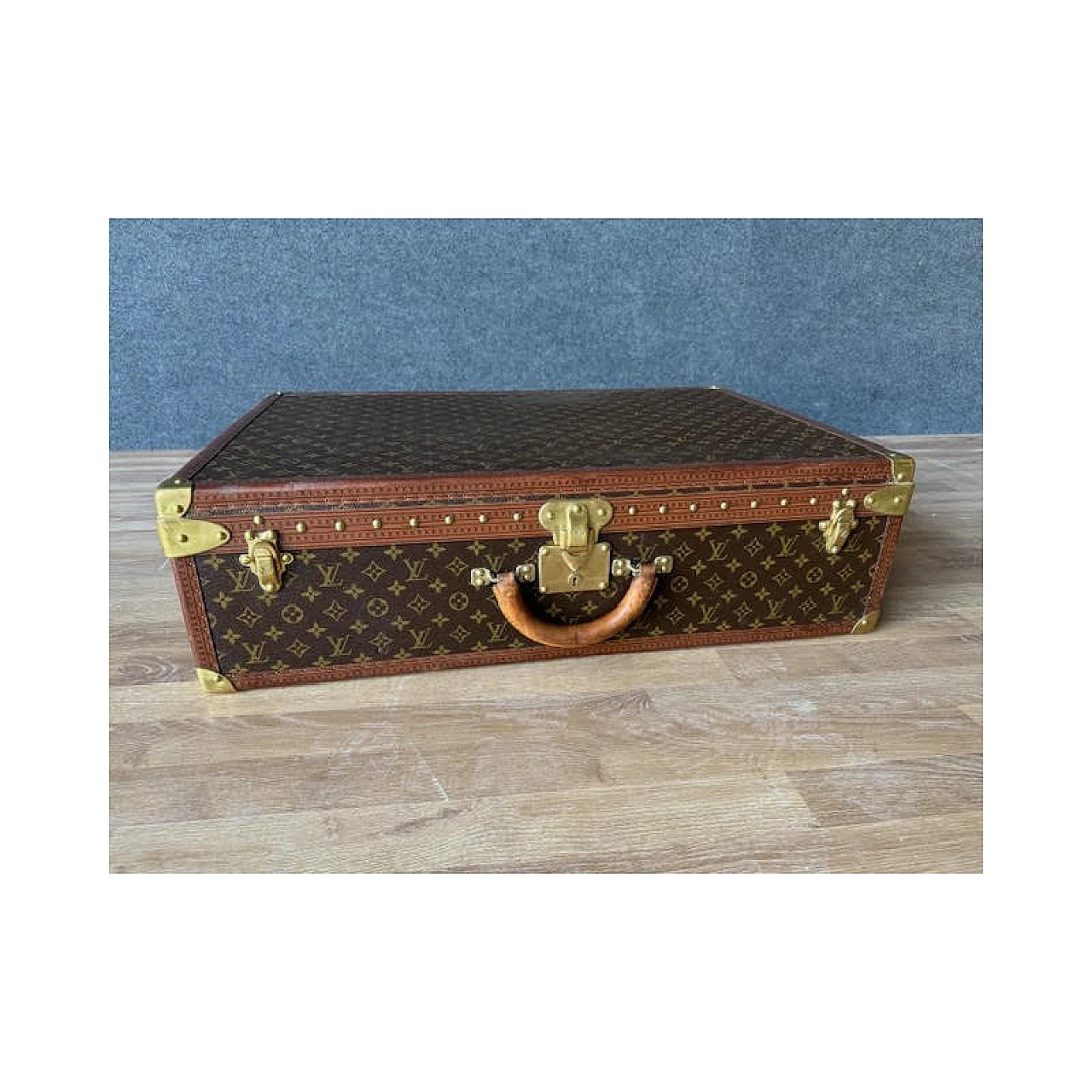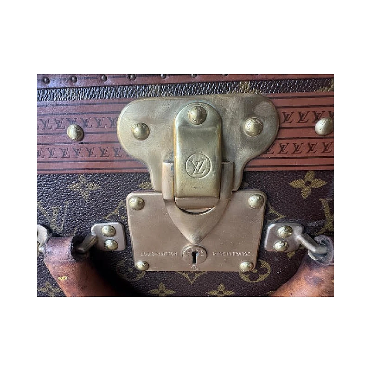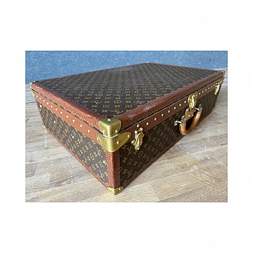 The Alzer rigid suitcase is one of Louis Vuitton's most iconic models; continues to fascinate because it is spacious and resistant, still in production today. The interior is lined in canvas, where the removable internal divider is located. The finishes are in leather, reinforced with studs and with golden brass corners, the latter also used for the locks. The two additional closures are characteristic, inspired by the Maison's trunks. Inside it has the authentic label bearing the unique product number (932450). It is produced with the famous Monogram canvas, a fabric characterized by stylized flowers and "LV" monograms, invented in 1896 by Georges Vuitton, son of Louis. It can be dated to the 1970s and is preserved with all the original parts; Item in very good condition with very slight signs of aging.