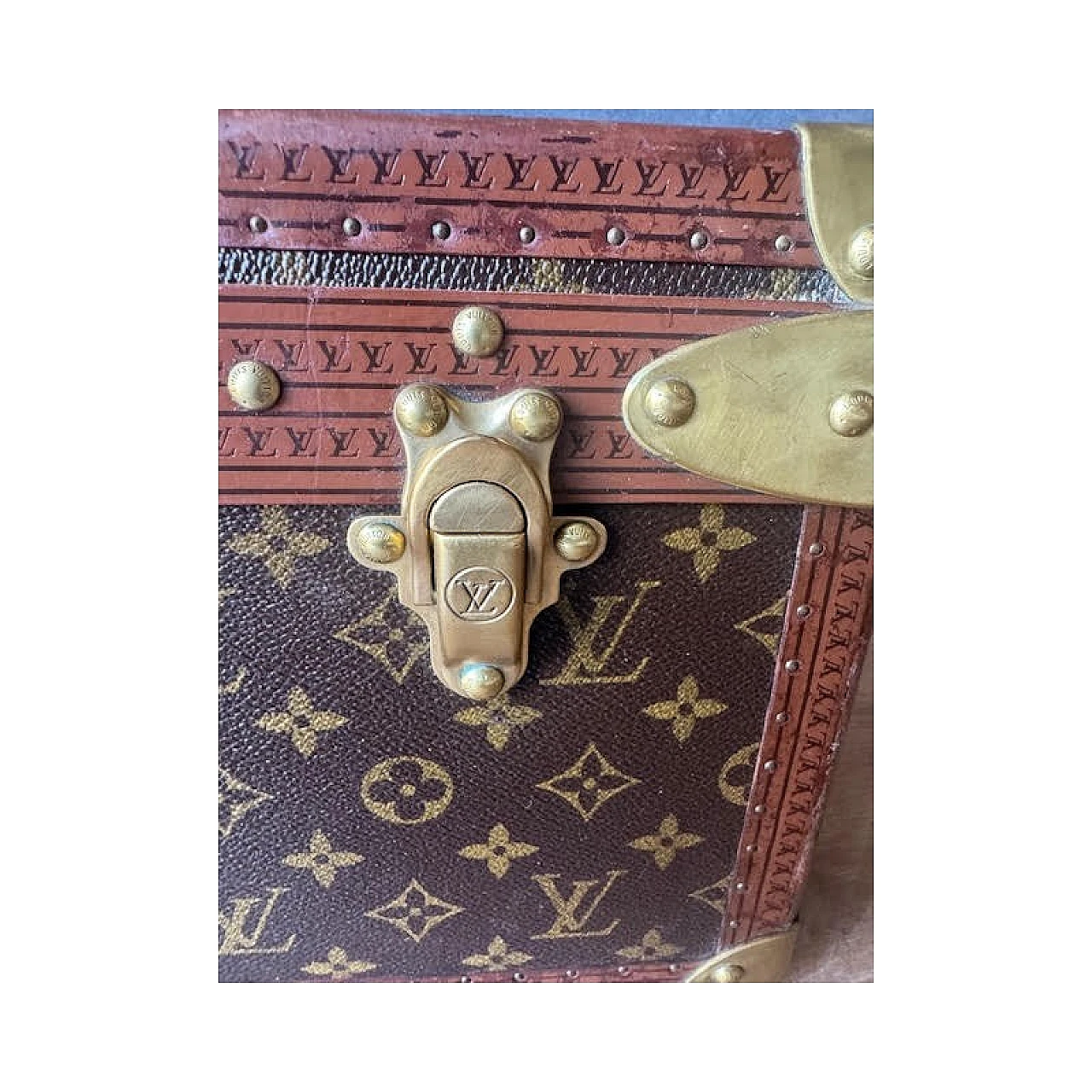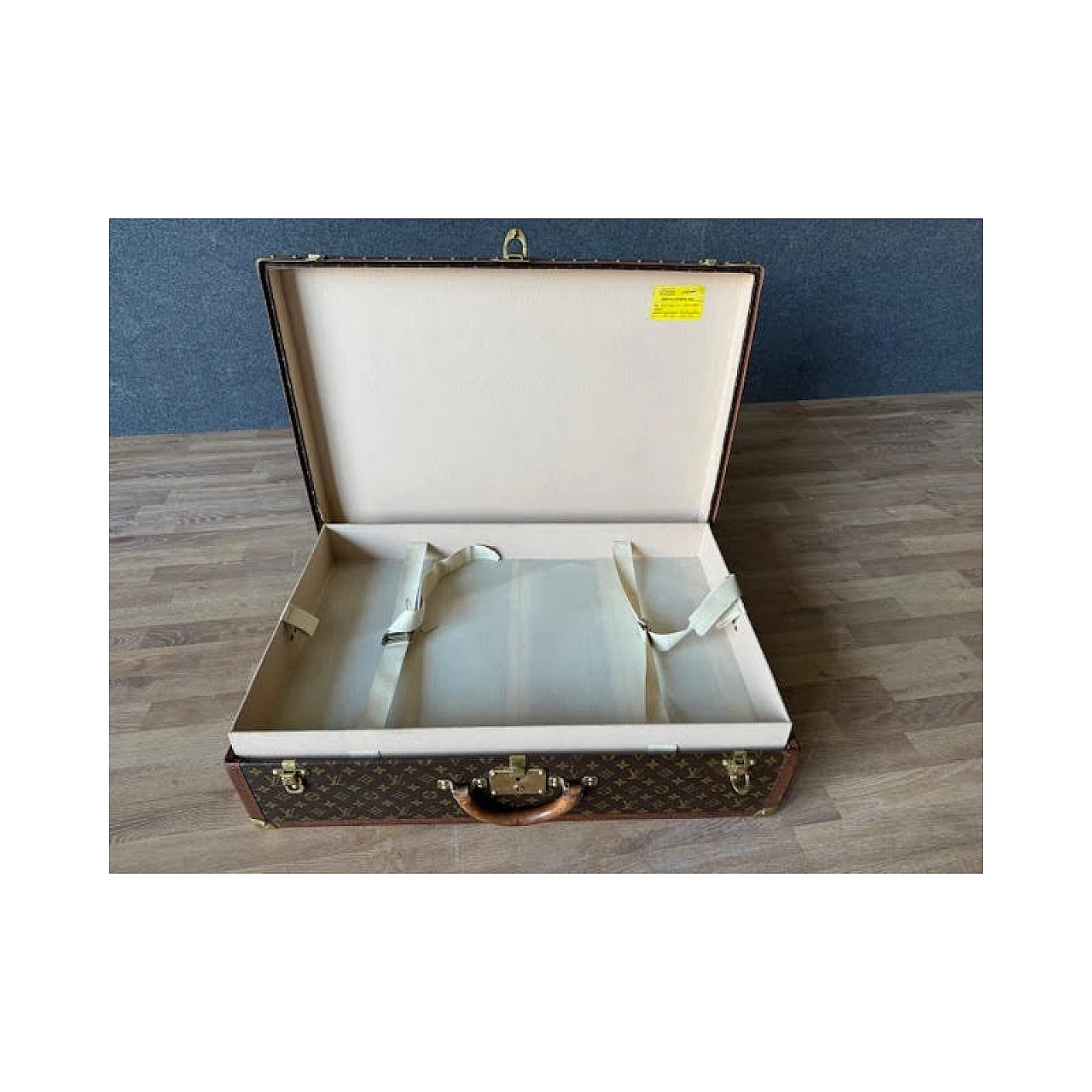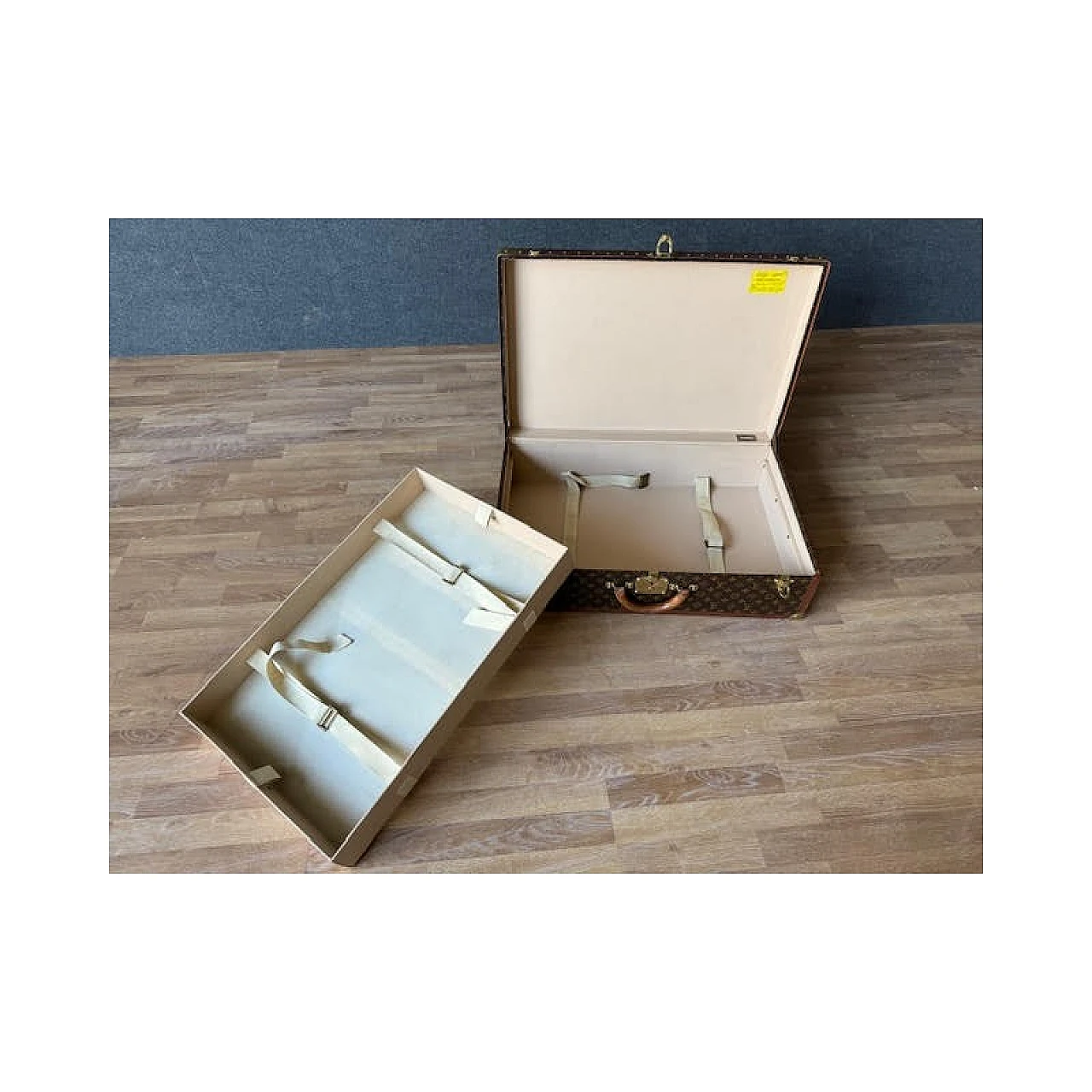 The Alzer rigid suitcase is one of Louis Vuitton's most iconic models; continues to fascinate because it is spacious and resistant, still in production today. The interior is lined in canvas, where the removable internal divider is located. The finishes are in leather, reinforced with studs and with golden brass corners, the latter also used for the locks. The two additional closures are characteristic, inspired by the Maison's trunks. Inside it has the authentic label bearing the unique product number (932450). It is produced with the famous Monogram canvas, a fabric characterized by stylized flowers and "LV" monograms, invented in 1896 by Georges Vuitton, son of Louis. It can be dated to the 1970s and is preserved with all the original parts; Item in very good condition with very slight signs of aging.