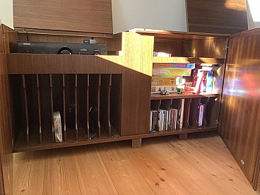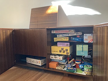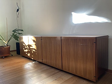 Walnut sideboard designed by Franco Albini and Franca Helg in 1978. The sideboard has been partly adapted so some parts of the structure of the modules and some of the interior shelves appear to be non-original. The doors and top, however, are original and made of walnut wood. Eight feet made by a local carpenter to an original design by the Poggi Company can be provided with the sideboard. The sideboard is in very good condition, besides some scratches on the top and discoloration of the wood due to exposure to light. Additional photos available upon request.