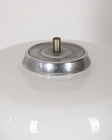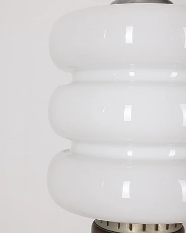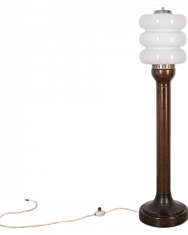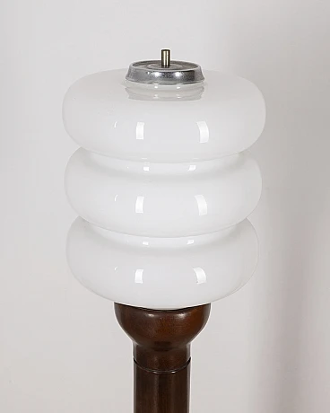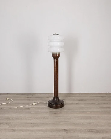 Floor lamp with wooden body and large polished white glass lampshade, Italian design, 1970s.