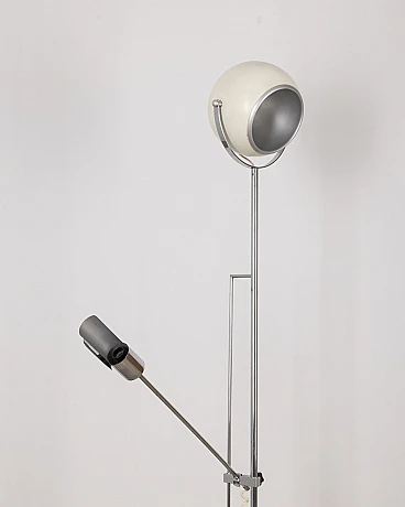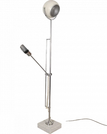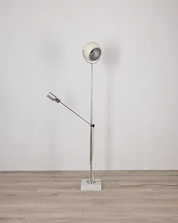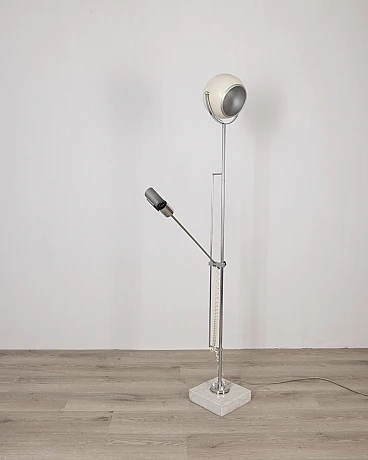 Floor lamp with marble base, two lights with double switch, arms with adjustable lampshades, Italian design, 1970s.