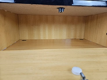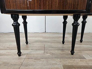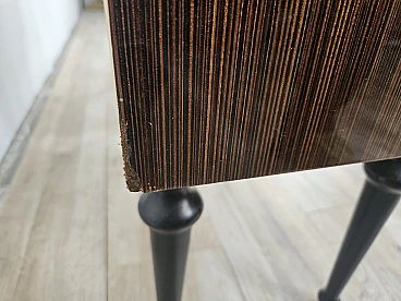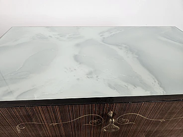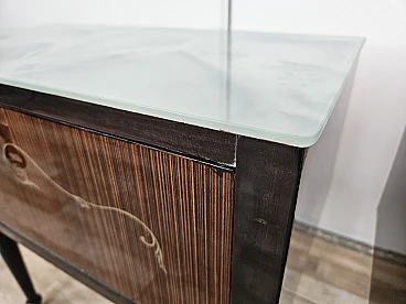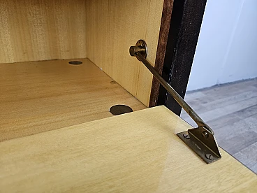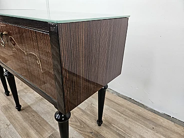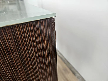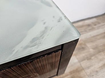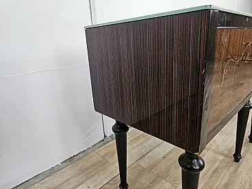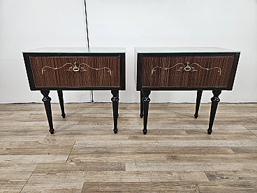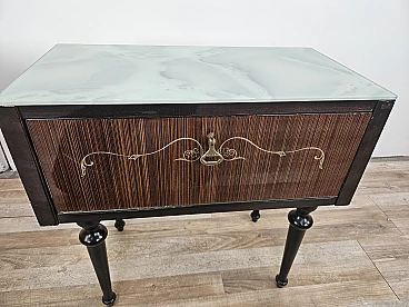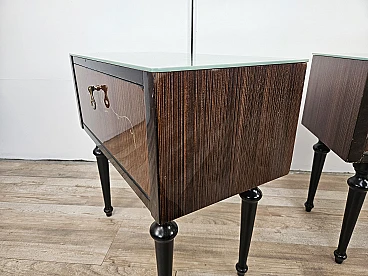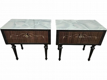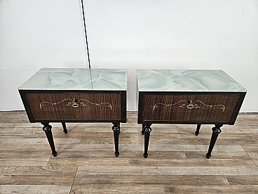 Particular pair of vintage 1960s bedside tables in wood and plywood with a beautiful blue glass top on top and a folding door. They show normal signs of wear due to age and use but have remained in excellent condition as shown in the photos.
