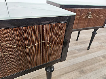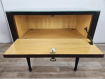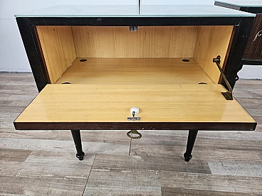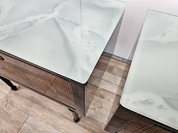 Pair of bedside tables with flap and blue glass top, 1960s