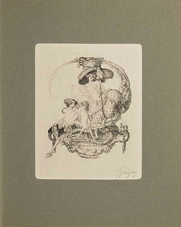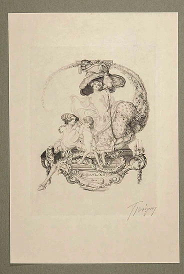Héliogravure on japanese paper realized by Fraz von Bayros in 1913 for Ex Libris Verlag K. Th. Senger, Munich.Mounted on passepartout. Edition of 260, hand signed in pencil by the Artist.Ref. Brettschneider 142.Very good condition.