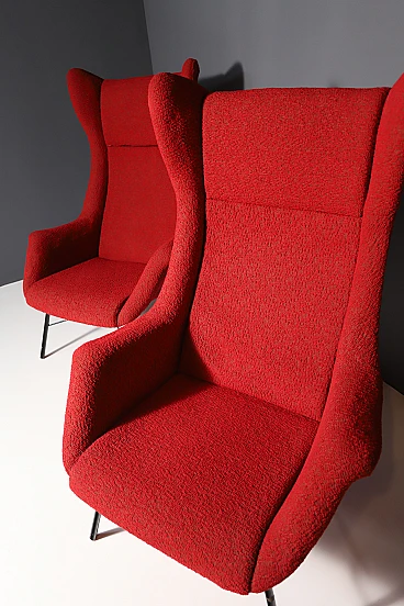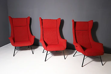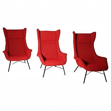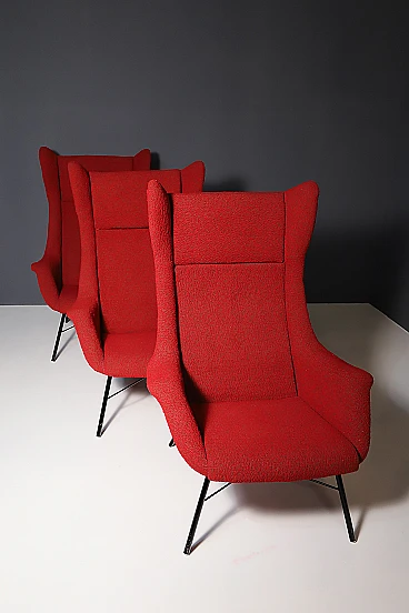 These wingback chairs have highly a prized design, designed in the 1960´s by Miroslav Navratil and Magda Sepová. The armchair has a subtle construction, yet it fits comfortably. With metal frames and an enveloping form, these chairs combine the classic wingback feature with a modern ergonomic feel.. The fiberglass skeleton is upholstered and set on a metal base – a novoretro classic – an icon, a chair comparable to any of the best foreign production of the time.