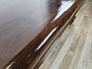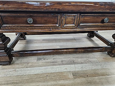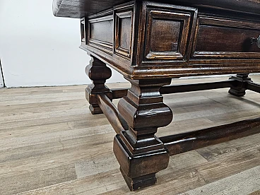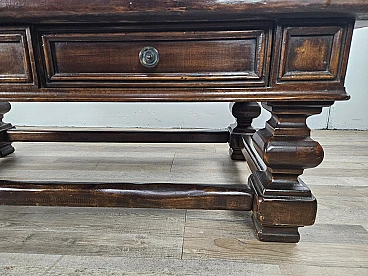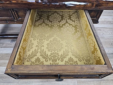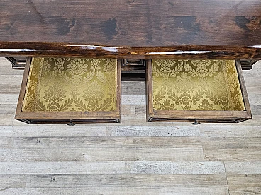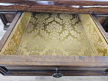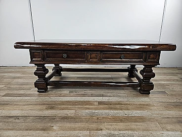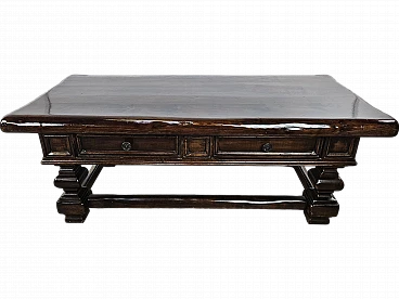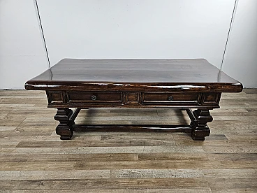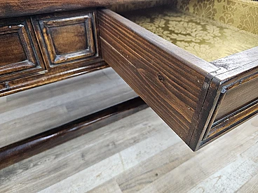 Vintage Italian coffee table from the early 1980s, very elegant with a shaped top worked along the edge. It has two large drawers, it can be used in a living room, a waiting room or fits perfectly in front of a sofa. Normal signs due to age and use.