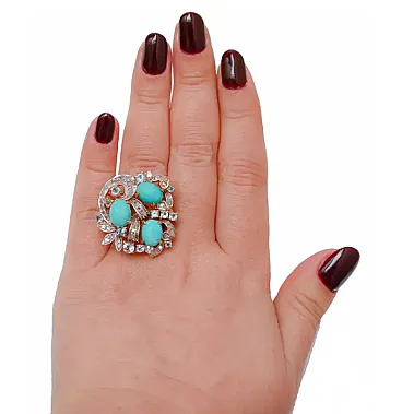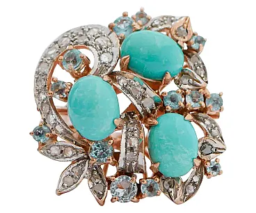 Gold and silver ring with topazes, turquoises, diamonds, 1960s
