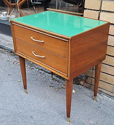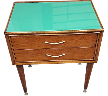 Bedside table in teak with green top, 60s
