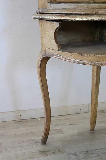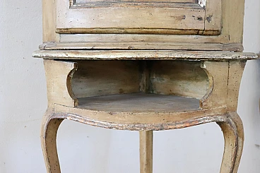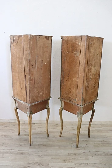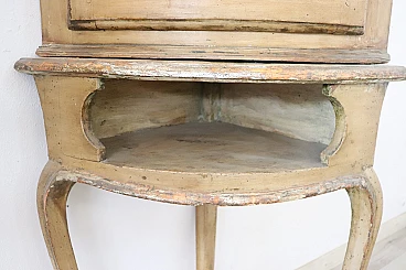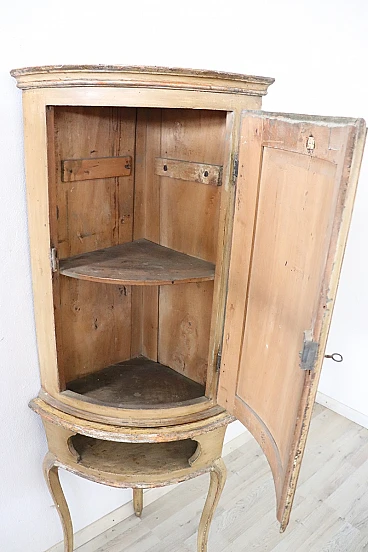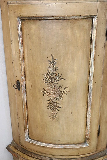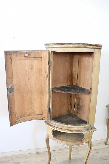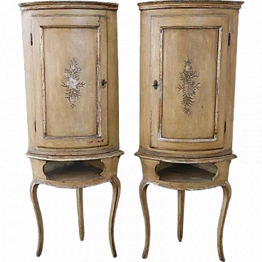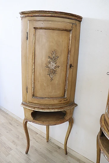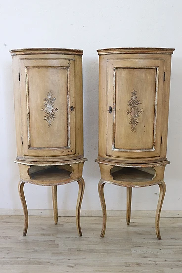 This pair of Italian corner cupboards from the Louis XV period is truly a treasure of craftsmanship and history. The use of solid poplar wood and the light lacquer with hand-painted floral motifs reflect the craftsmanship of the time and their state of preservation is remarkable, considering their age. Their ability to integrate into various furnishing schemes thanks to their elegant and versatile design is a further strong point.
