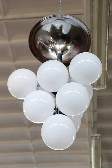 Glass and chromed metal chandelier, by Max Bill for Temde, 1960s 13