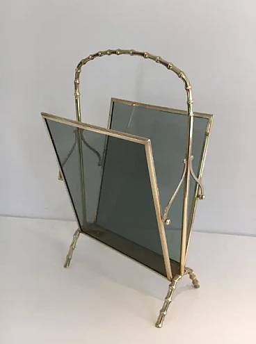 Faux-bamboo bronze magazine rack by Maison Baguès, 1940s