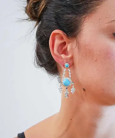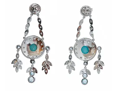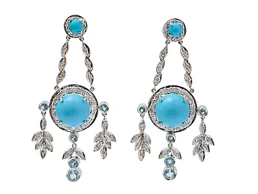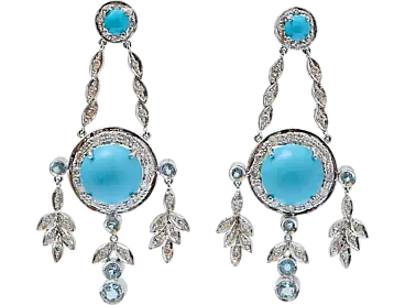 Earrings in platinum, magnesite, turquoise, diamonds, topazes, 1970s