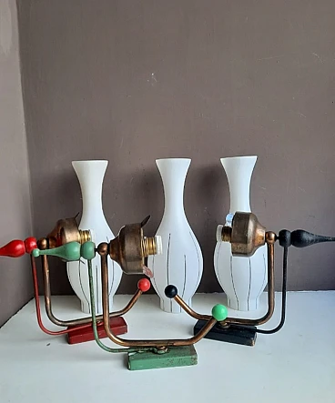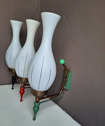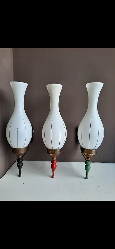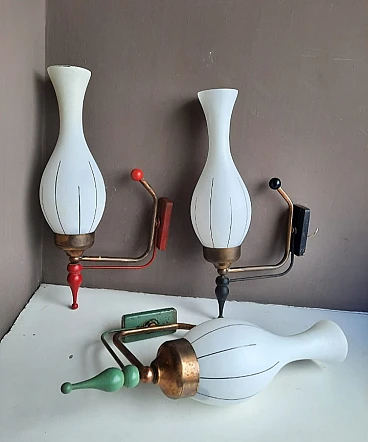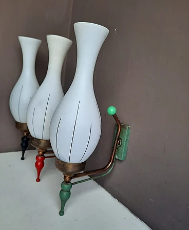 3 glass and enameled metal wall sconces, 1960s