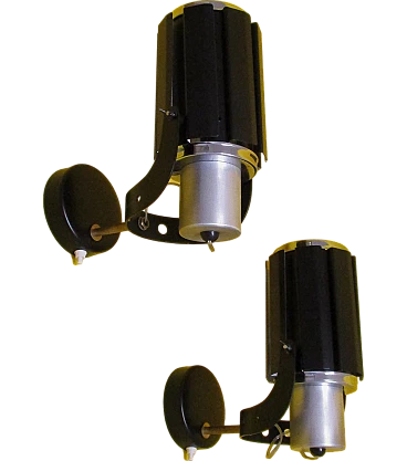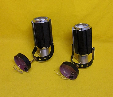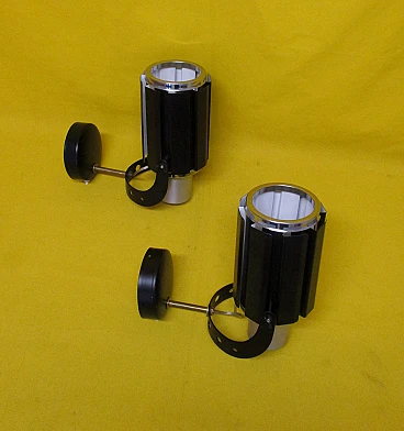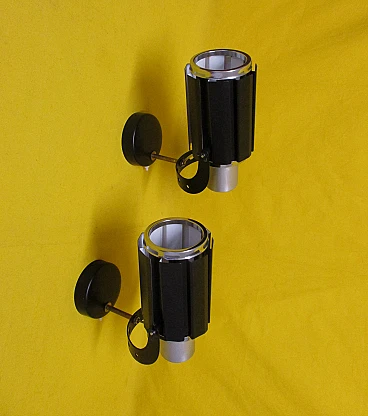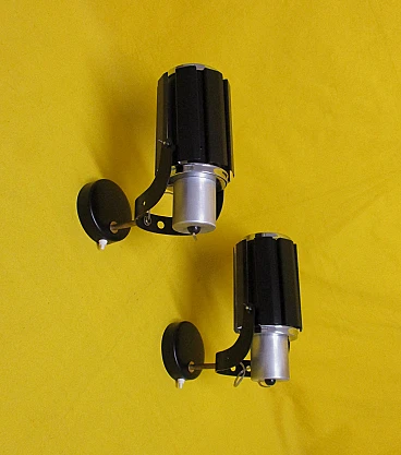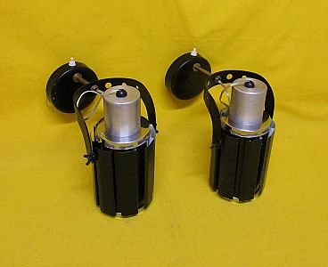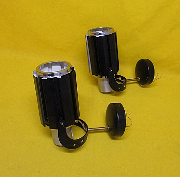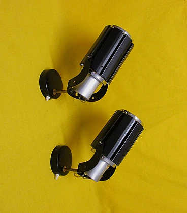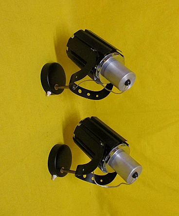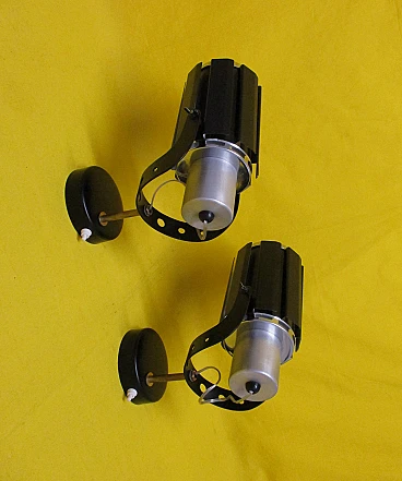 Wonderful large pair of designer wall lamps from the 1980s era made of metal with splendid adjustable lampshades, fitted with E27 model lamp holders, on the rear plate of each wall lamp there is a switch to turn the light on and off, these splendid wall lamps represent the charm of that period characterized by design details, very beautiful and of notable scenographic impact thanks also to the details created with accuracy and refinement, Italian manufacturing, ideal as a furnishing object to embellish any environment by adding a tone of elegance and beauty, any lighter areas are due to the reflection of artificial light, used condition, in perfect working order and as shown in the photos. Dimensions for each wall light: height cm. 26 - width cm. 16 - depth cm. 26