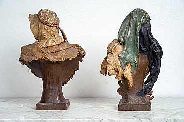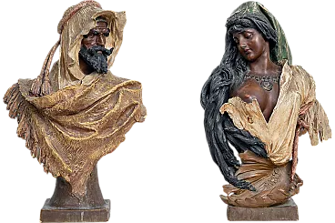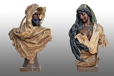 Description: Pair of orientalist sculptures in polychrome terracotta belonging to the French Napoleon III period.