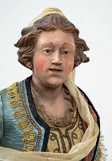 Nativity sculpture depicting Giorgiana with wooden hands and feet