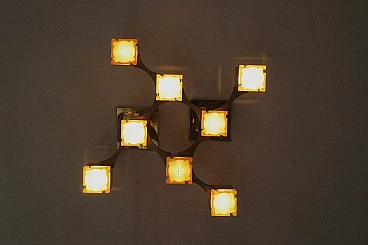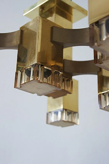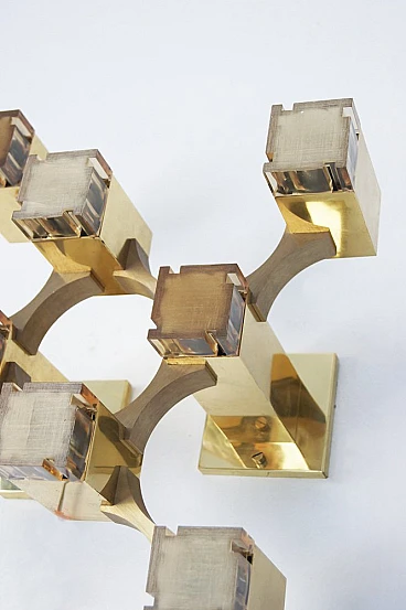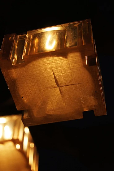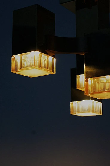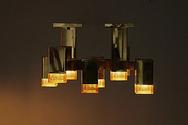 A famous chandelier belonging to a series inspired by Gaetano Sciolari's journey through New York, This is a stunning piece of lighting design that demonstrates Sciolari's mastery of form and function. The chandelier features a striking geometric pattern with a series of interconnected cubes, creating a visually dynamic and sculptural piece. Sciolari was an Italian designer who worked primarily in lighting design, creating innovative and iconic pieces throughout the 20th century. His designs were characterized by a modernist aesthetic and use of geometric forms. The Cubic Chandelier is a classic example of Sciolari's work, characterized by clean lines and a timeless design that remains relevant today. The chandelier is a distinctive piece that can elevate any modern interior and is a testament to Sciolari's enduring legacy as a master of lighting design. fun fact The Gaetano Sciolari Cubic chandelier was used as a prop in the 2004 film Layer Cake (L4YER CAKƐ). British crime thriller directed by Matthew Vaughn and starring Daniel Craig. The Gaetano Sciolari Cubic chandelier was used as a prop in the 2015 British dystopian horror film High-Rise.