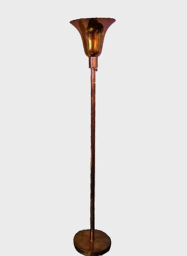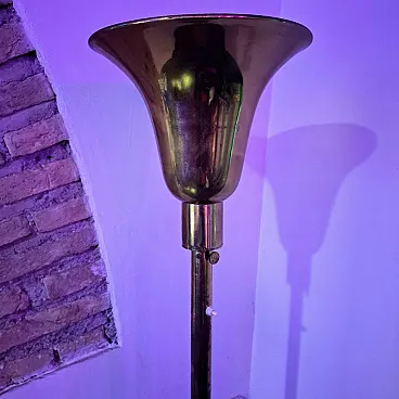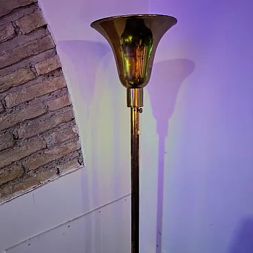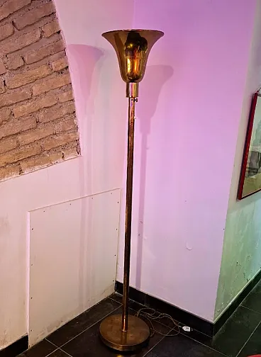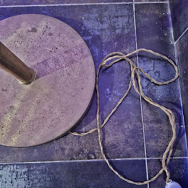 This splendid 1940s ART DECO brass floor lamp, a vintage piece that exudes elegance and refinement. Attributed to renowned designer Pietro Chiesa, it embodies the elegant and timeless Art Deco aesthetic of the 1940s. It still retains its original cable and ceramic lamp holder, adding authenticity and charm. Although the lamp is in good condition, we recommend checking its electrical system. Add a touch of retro glamor to your home with this beautiful vintage lamp, perfect for any collector or enthusiast of mid-century design. Height 172 diam. base 31