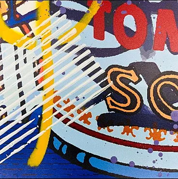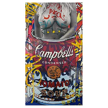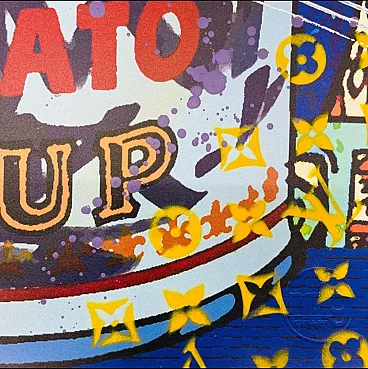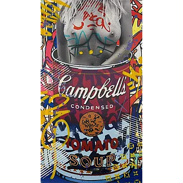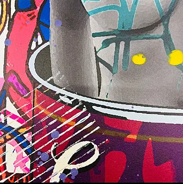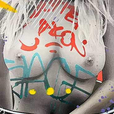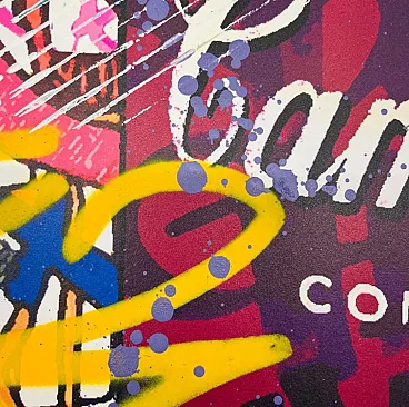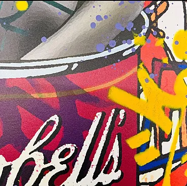 A Mixed media on paper, embellished by hand by Airoh a French artist. He drew and painted from a very young age. Working for several years as a graphic designer in France and Switzerland, he is inspired by Pop Art and New Pop Art trends. In some of his works, Aïroh incorporates brands to remind people of their dependence on consumer products. The graphic strength of these major brands also has an effect on our collective unconscious as well as our aesthetic codes. Following his predecessors, Aiiroh uses mixed media and current media, such as Swarowsky crystal collage, acrylic paint or spray paint and stencils. He has worked in collaboration with the famous chef Nobu and the luxury watch brand Hublot. Aiiroh also designed an art bottle for the prestigious French winery Bertaud Belieu in St Tropez. His works have been collected by many celebrities, including major hip hop icons and international actors. It was exhibited during Art Basel in Fontainebleau - Miami. He is ranked among the best French artists based on auction results.