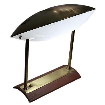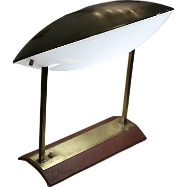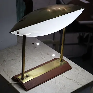Brass structure, leather base and opaline perspex lampshade. 1960s Stamped stilnovo brand 40x36 cm