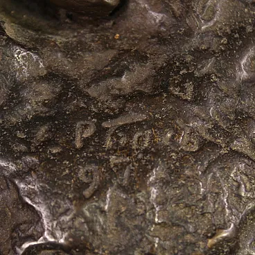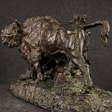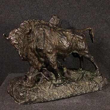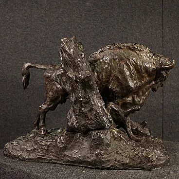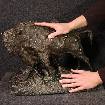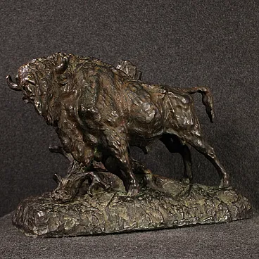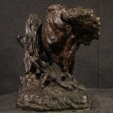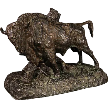 Rare bronze sculpture from the second half of the 19th century. Work of extraordinary quality depicting a bison, signed and dated 1897 by the Russian sculptor Robert Romanovich Bach (see photo), lacking authenticity. A member of the Academy of Fine Arts in St. Petersburg, he held sculpture lessons and won numerous prizes in his homeland. The bronze in question represents a bison from the Byelovezhskaya forest, a nature reserve famous for its wildlife. Statue that is difficult to find, in a beautiful patina and in an excellent state of conservation.