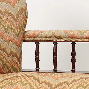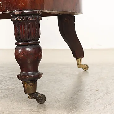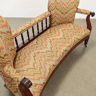 Louis Philippe sofa for living room or conversation, in mahogany, bipartite back with central balustrade, padded seat, armrests and back, front feet with casters. Italy, second quarter of the 19th century.
