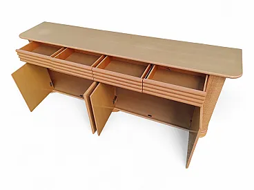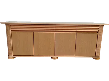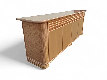 Bamboo wood countertop by Roberti Rattan from the 1960s. Equipped with 4 drawers and 4 doors. Preserved in excellent condition. There is a stain inside a drawer (see photo). Dimensions 229 x 47 x 82 cm (width, depth, height) SKU 397126