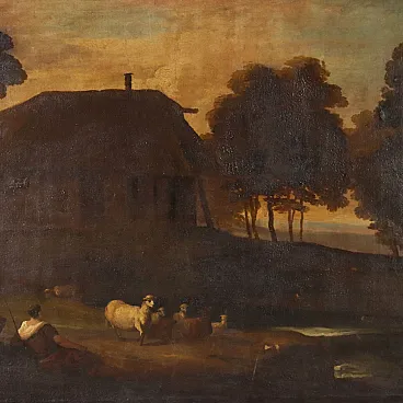 Landscape with Shepherdess and Sheep, oil on canvas, 18th century